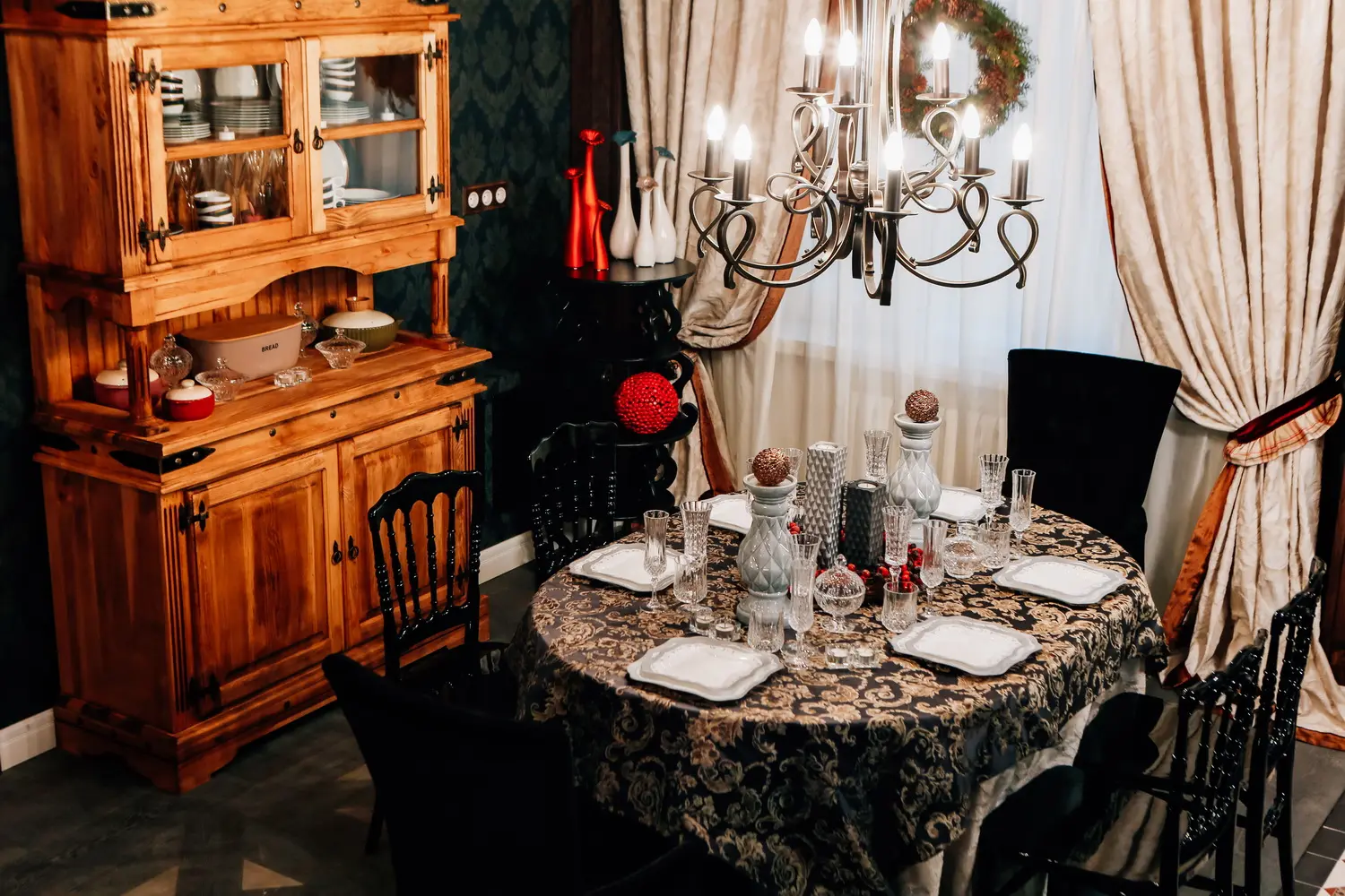 Буфет для дома Викинг-01 имеет габариты 1230х490х1966 - он действительно объемный и вместительный! При этом, он замечательно впишется в интерьер как городской квартиры, так и небольшой по площади кухни в загородном доме. Где бы вы ни решили его поставить, буфет Викинг-01 придаст комнате особый уют и тепло, поскольку даже его внешний вид напоминает о тех временах, когда люди с удовольствием грелись у очага холодными вечерами. Отдельно стоит рассказать о декоративных элементах: корпус буфета Викинг-01 украшен декоративными уголками и гвоздиками в старом скандинавском стиле, а боковыми опорами верхних шкафчиков служат колонны-балясины.