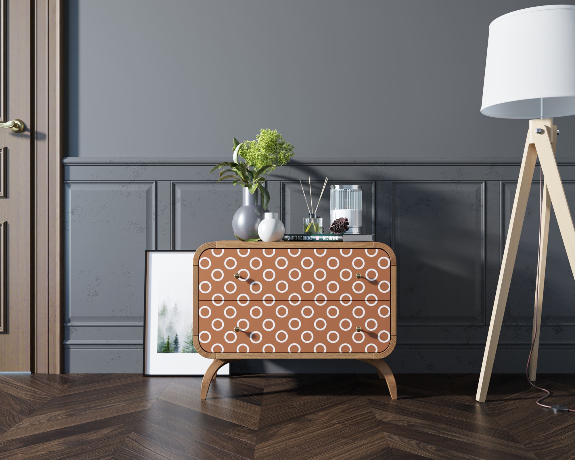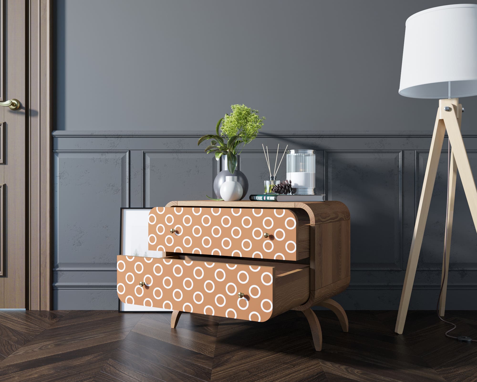 Комод массив дерева "Ellipse Print" с двумя ящиками принт 3