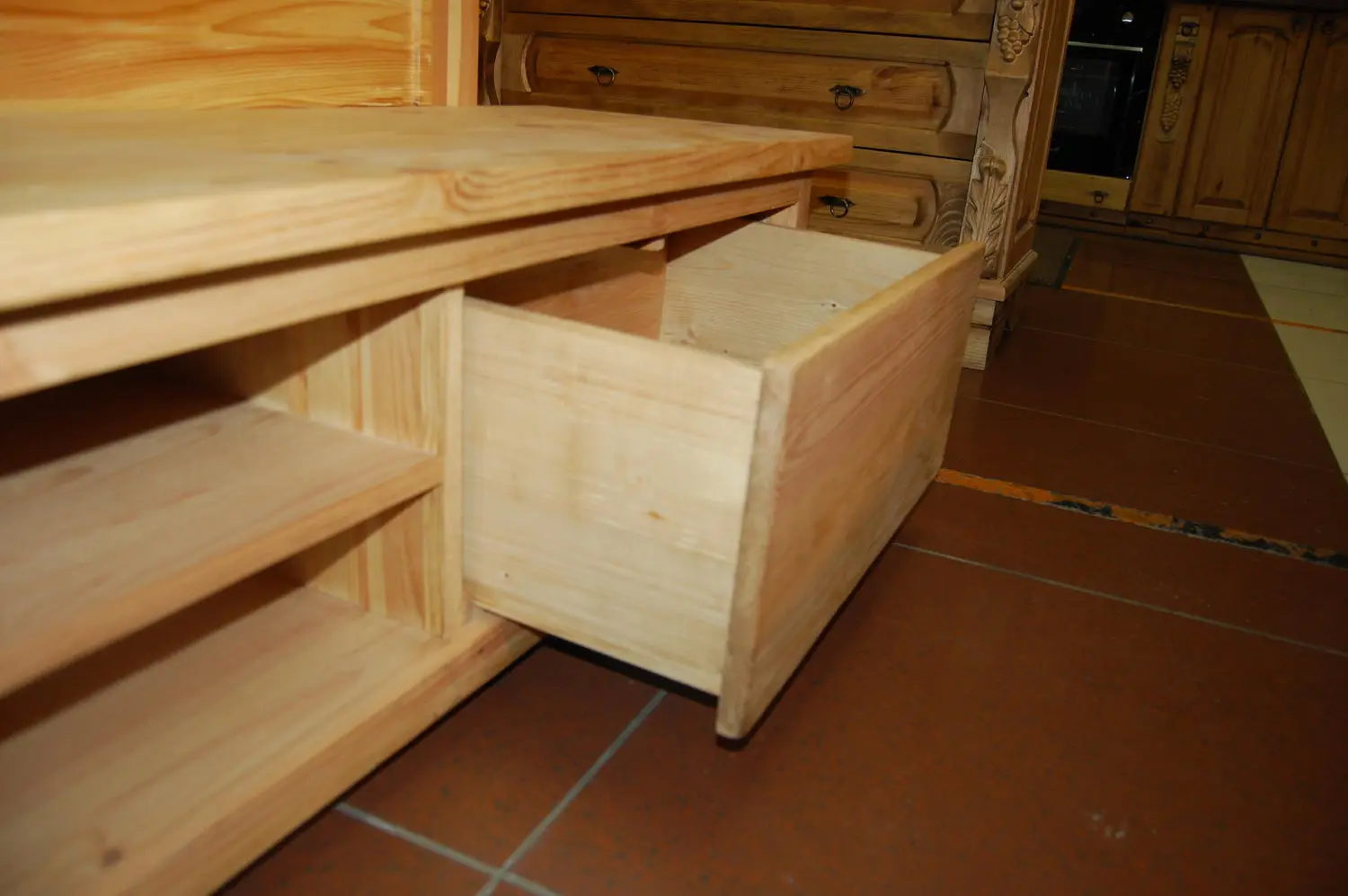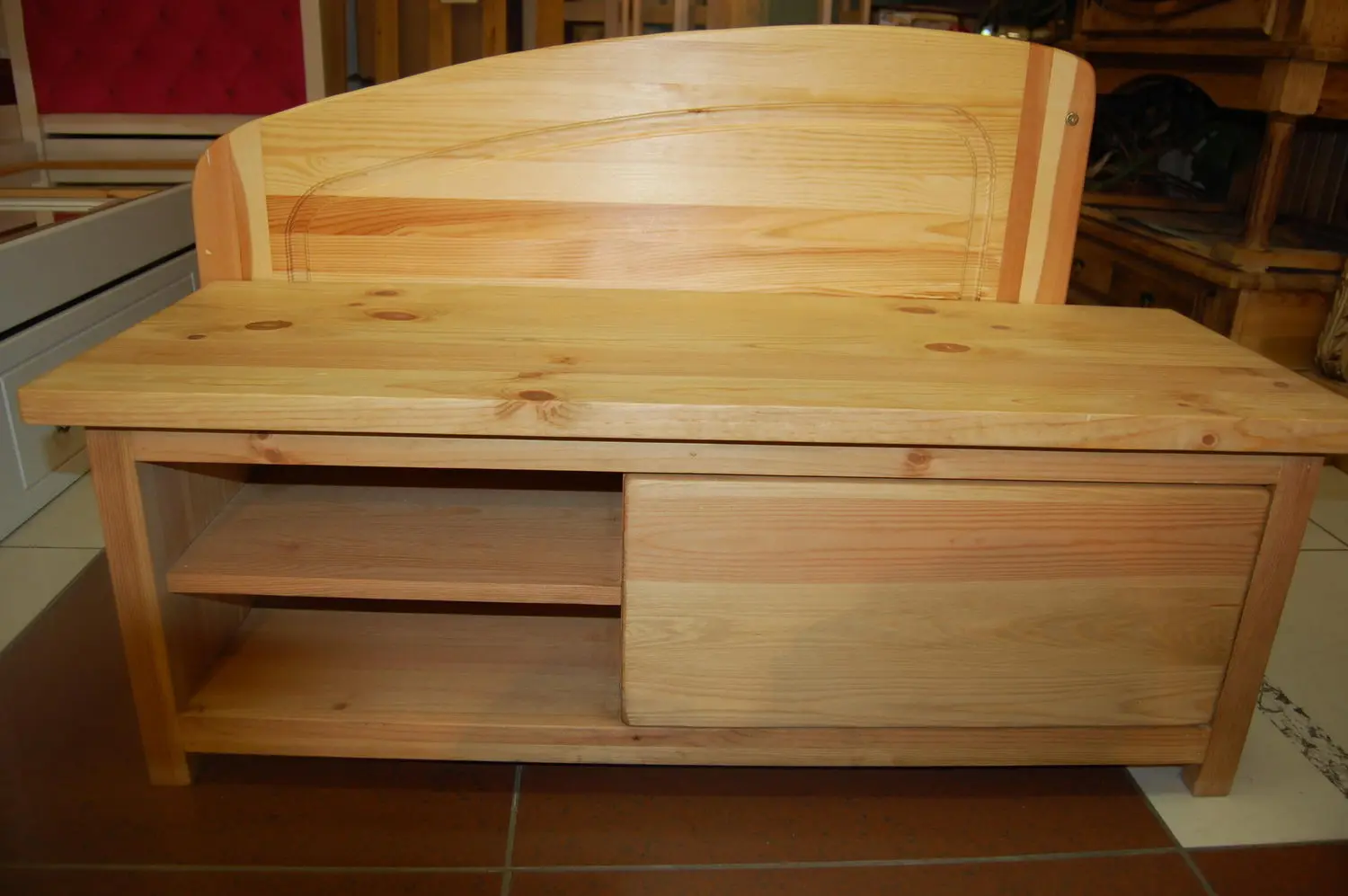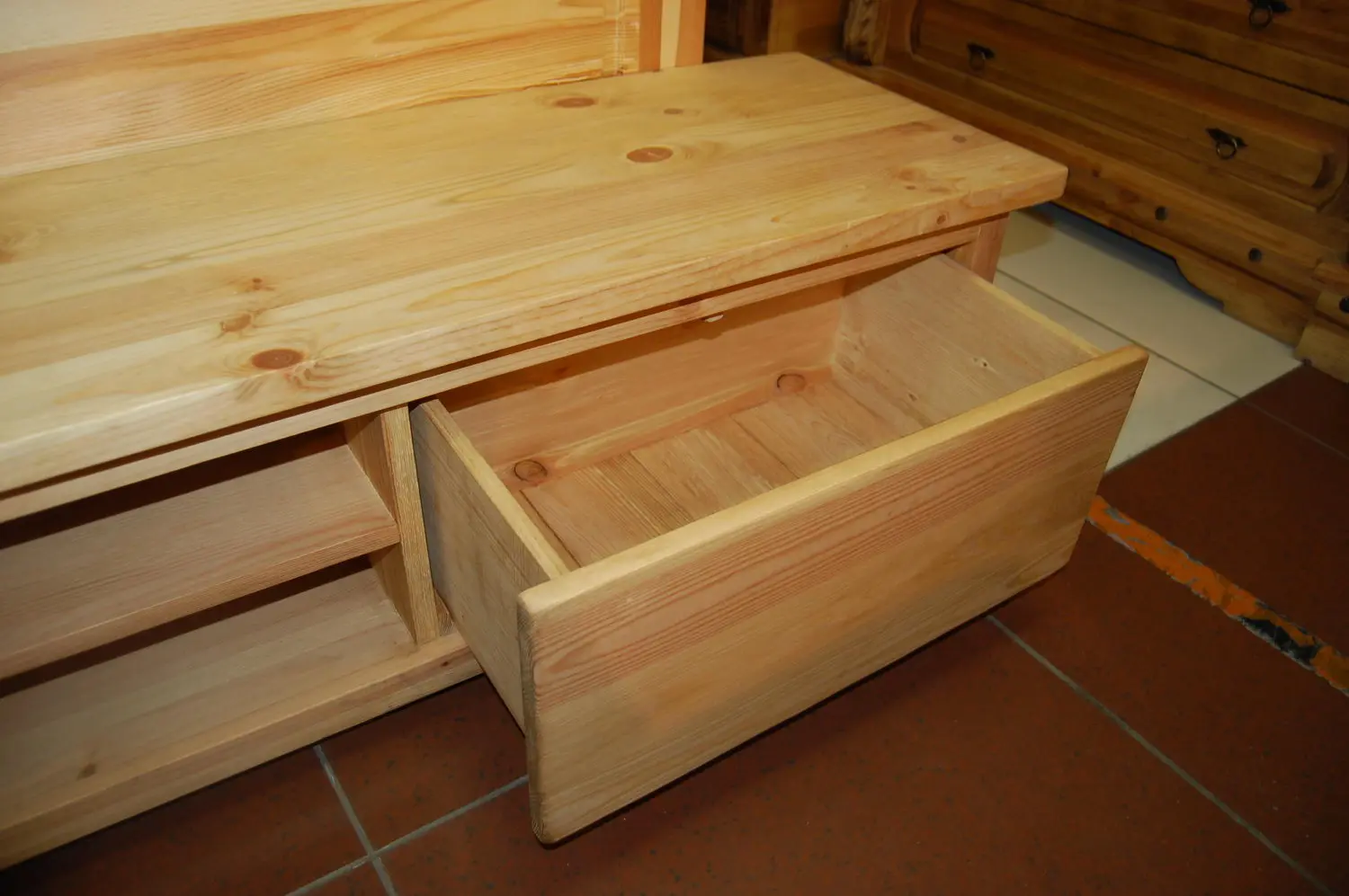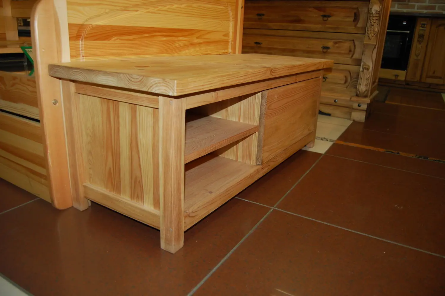 ТВ-тумба, выполненная из натурального дерева.