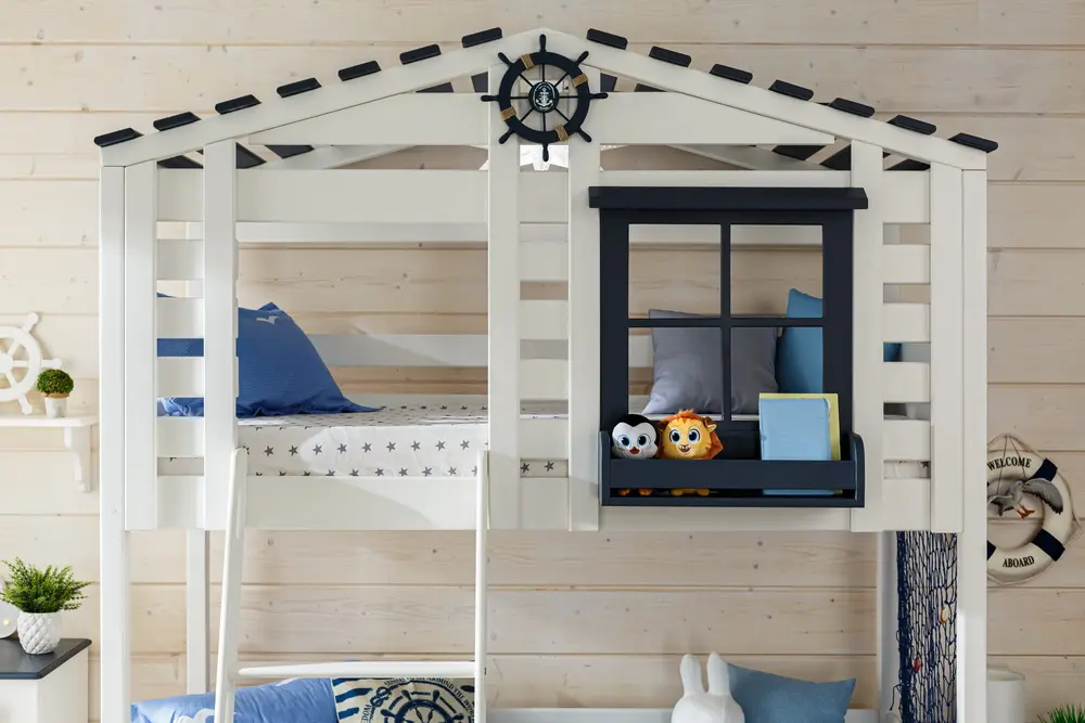 Мы предлагаем различные варианты окон со ставнями без ящика: сердечко или кружочек. Это позволит вам выбрать дизайн, который понравится вашему ребёнку.