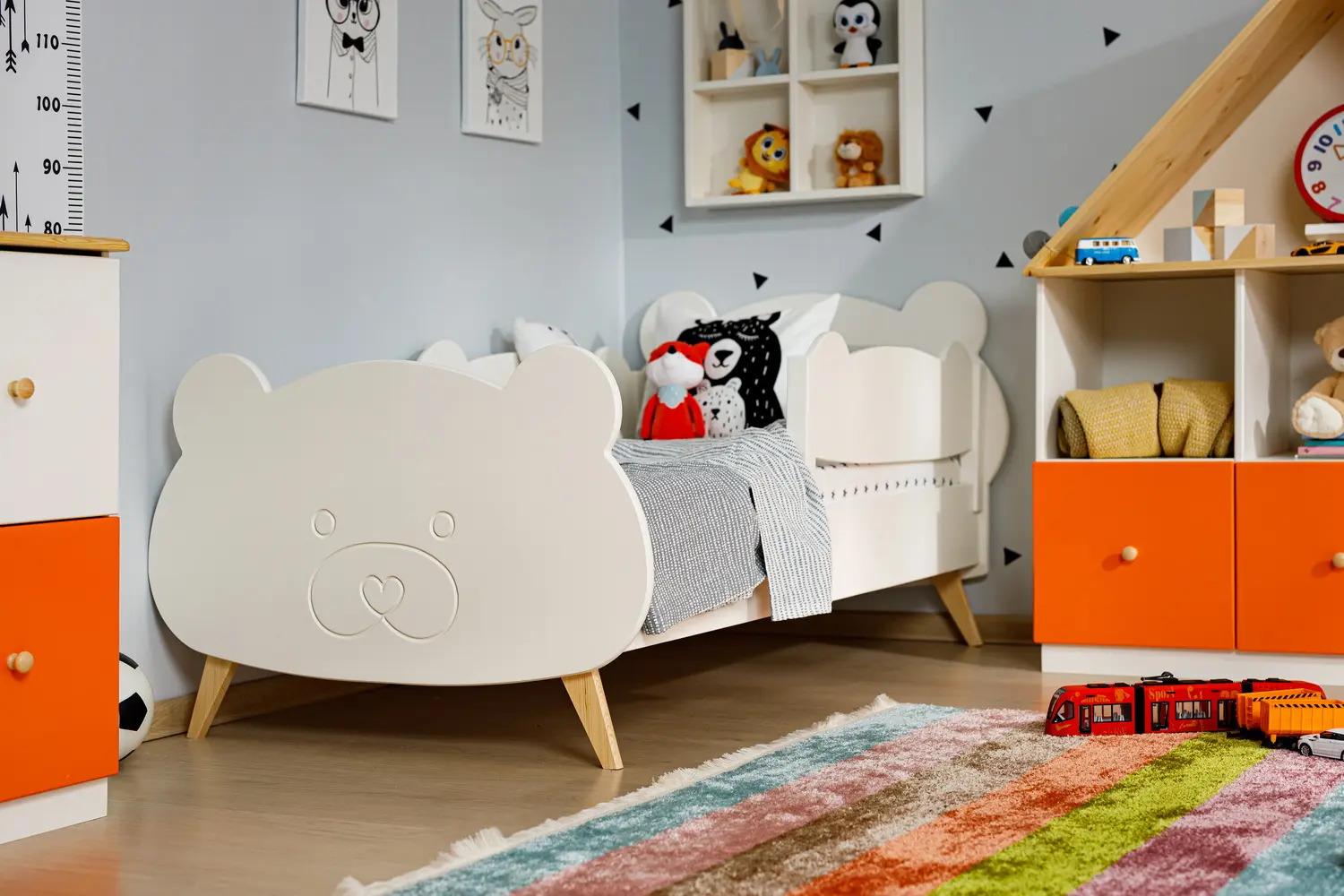 Фрезеровка в форме медвежонка украшает изножье кровати. Этот элемент придаёт кровати особый шарм и делает её ещё более привлекательной.