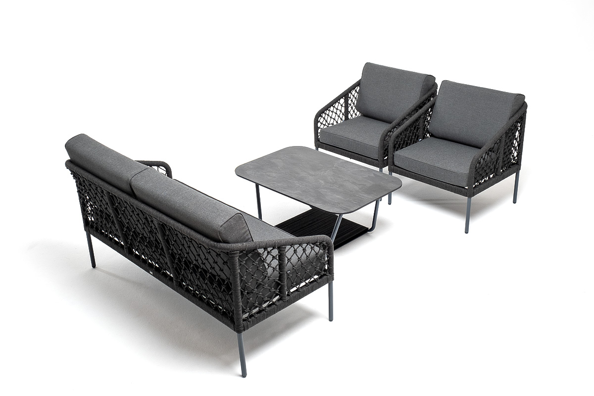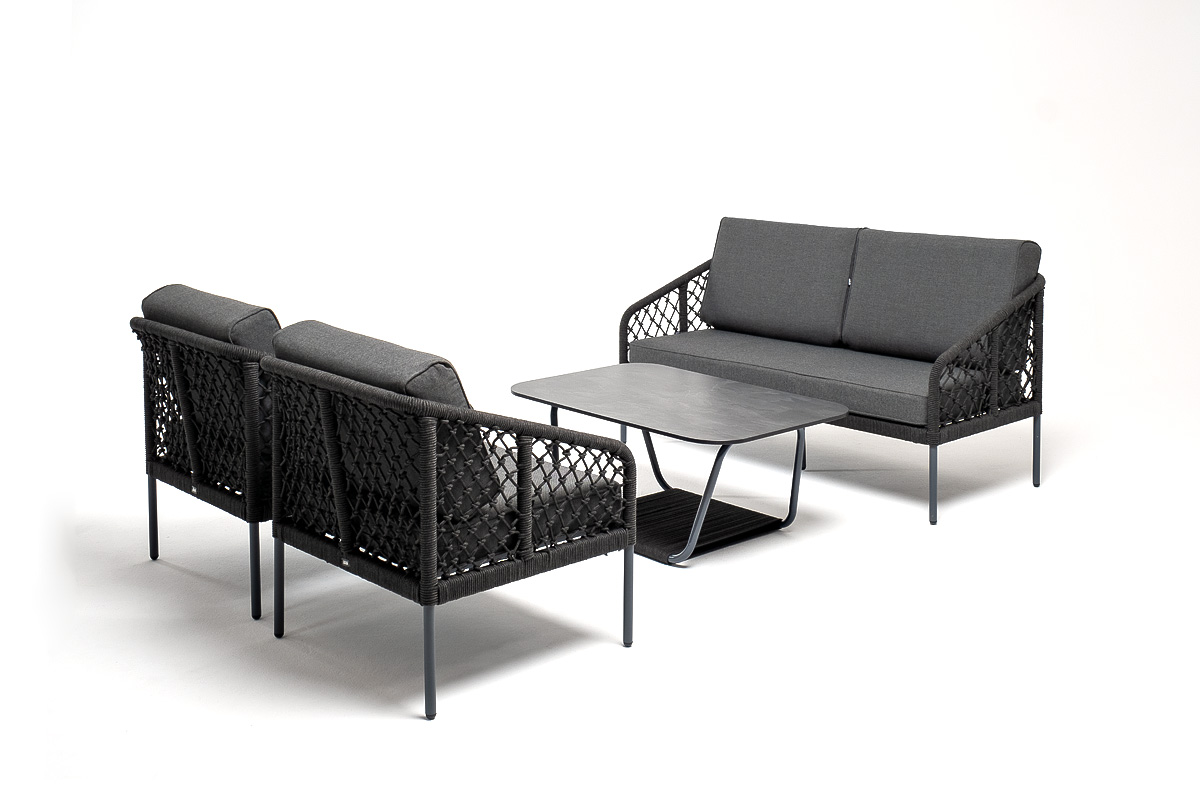 "Каннизо" лаунж-зона 4-местная из роупа узелкового плетения, каркас алюминий, роуп темно-серый