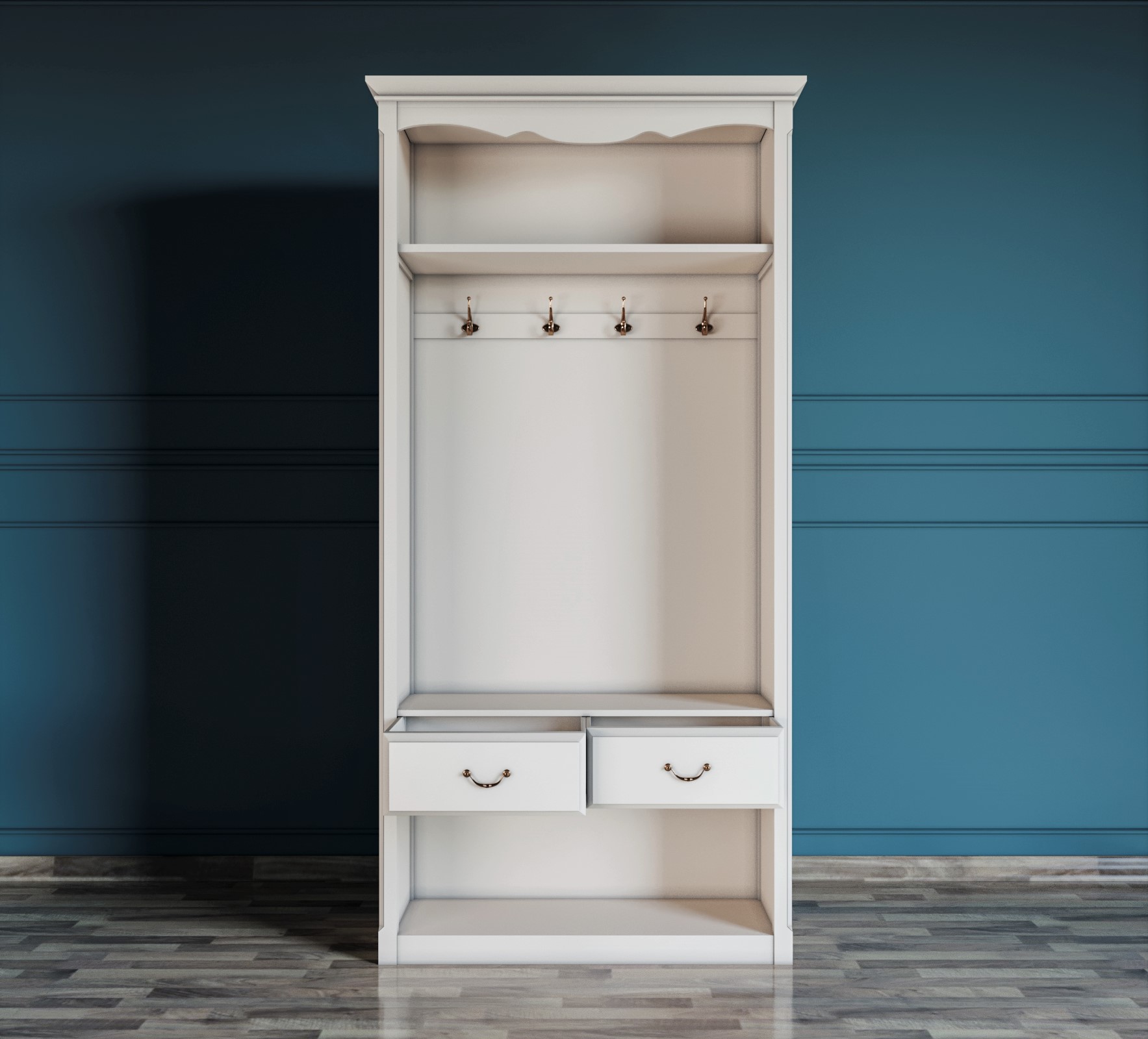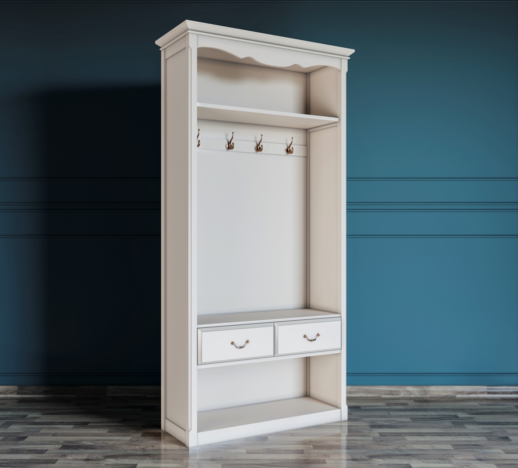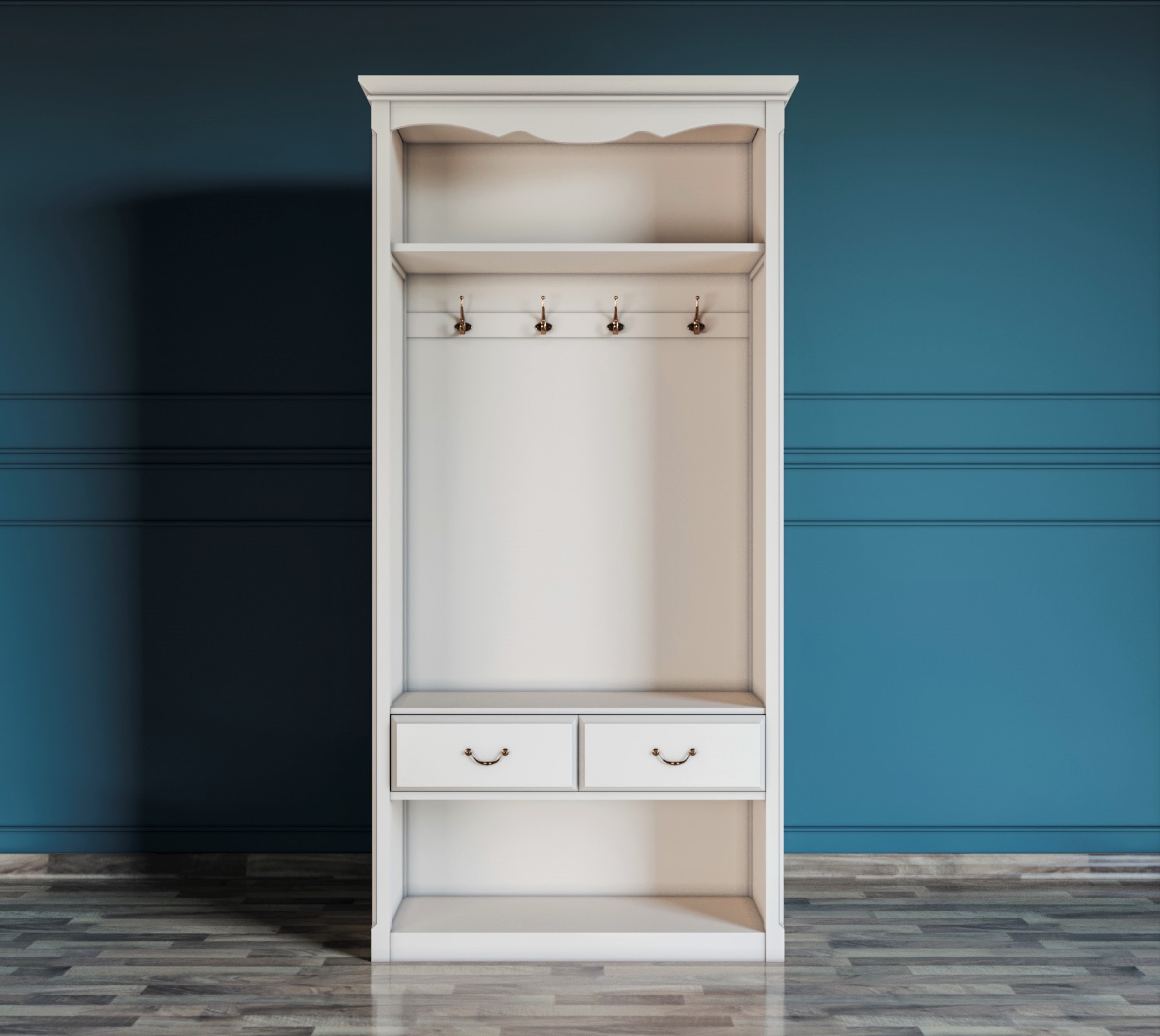 Наполнение: длинная шляпная полка, а под ней 4 крючка.