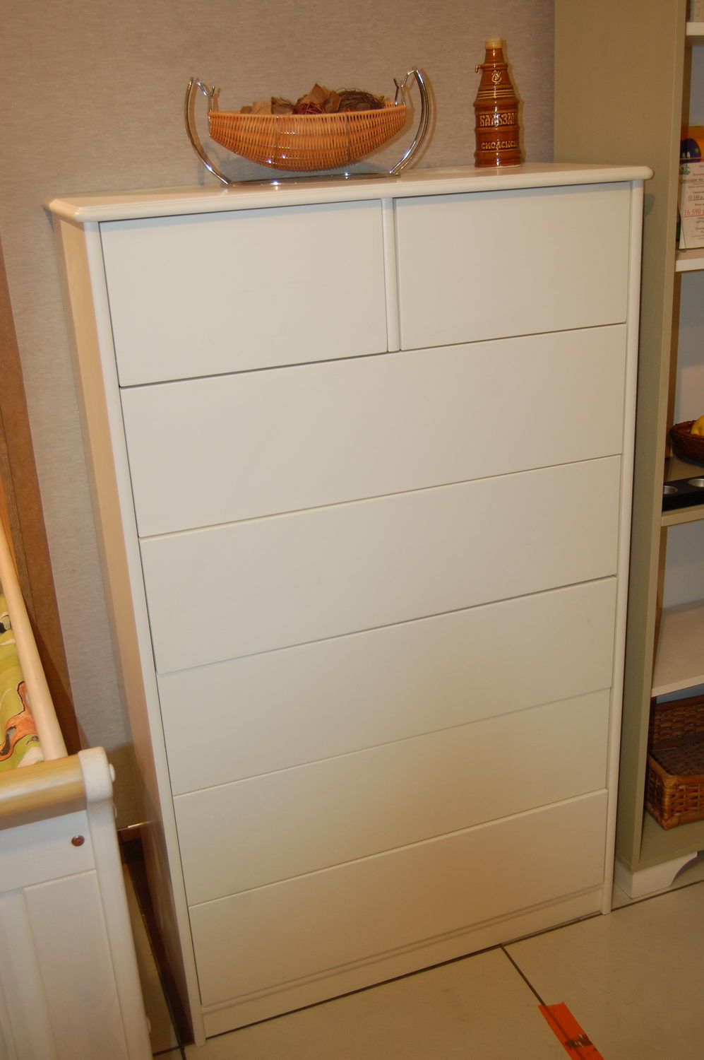 Классический комод 7 ящиков из массива сосны. Максимальная нагрузка на направляющие - 20 кг. Ручки "грибок" в комплекте. Комод в лаке - складская программа.