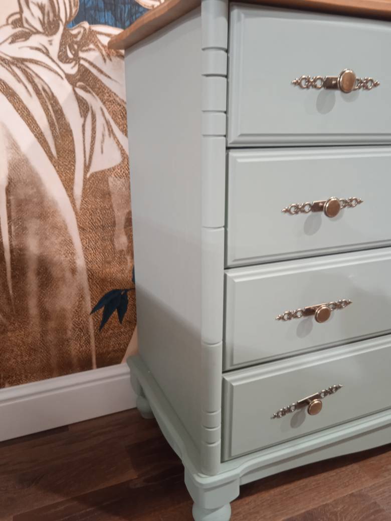 Цвет комода на титульной фотографии - бриз/скандик - крышка, ручки.