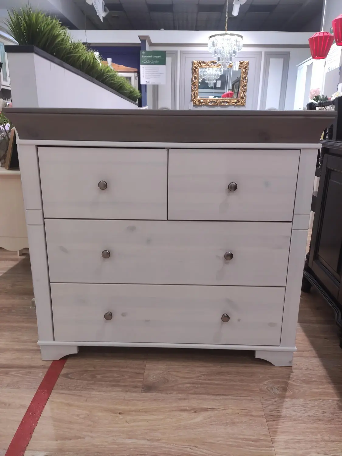 Комод Бейли с 4 ящиками на роликовых направляющих частичного выдвижения. Дно ящиков ДВП белого цвета. Боковины ящиков выполнены из сосны, не покрыты лаком, но качественно отшлифованы.