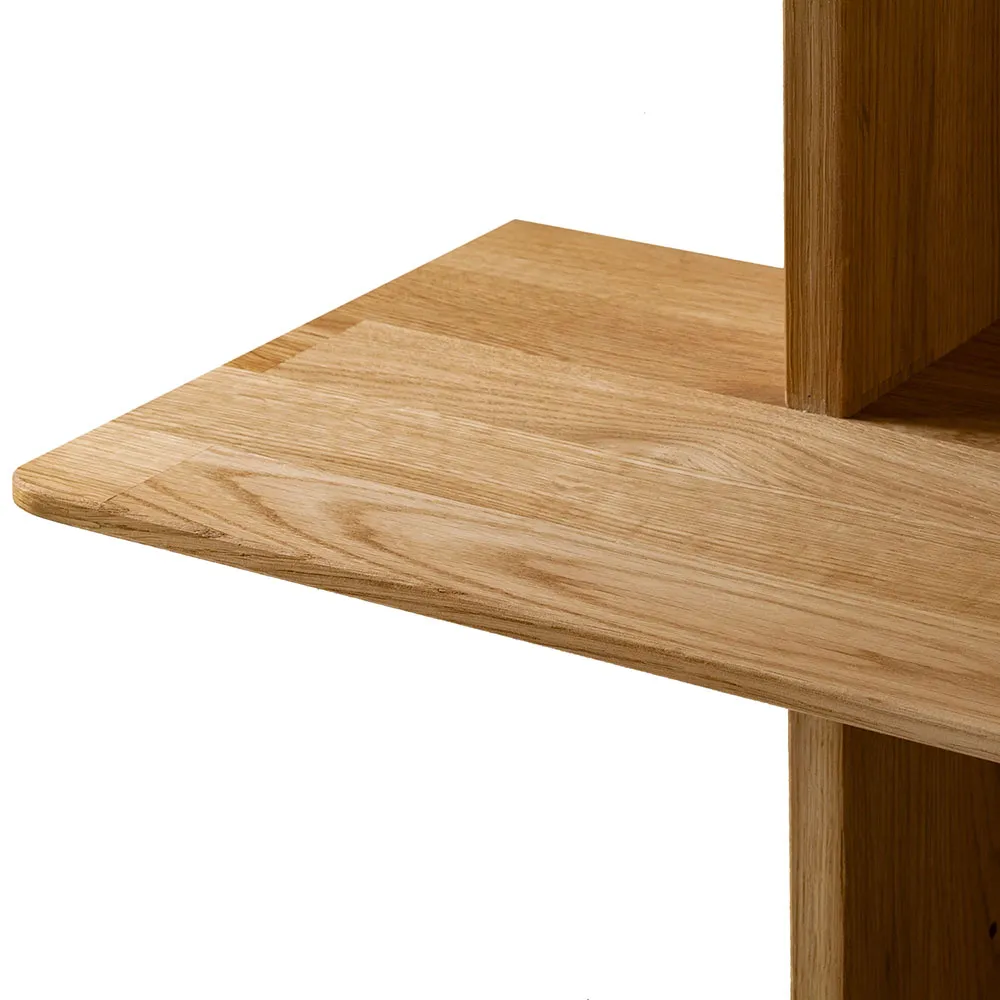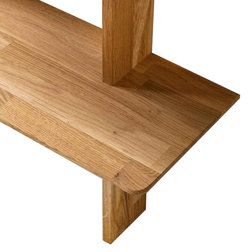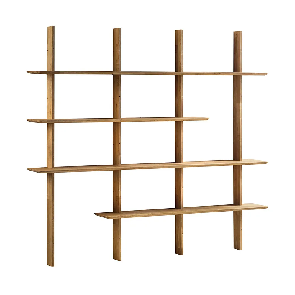 Настенный стеллаж изготавливается из натурального долговечного материала – массива дуба. Дерево имеет красивую текстуру и приятно на ощупь. У стеллажа три секции с двенадцатью полками. Он поставляется в разобранном виде, в одной упаковке. Размеры стеллажа 1968х250х1762 мм, вес 40 кг. Гарантийный срок на изделие – 1 год.