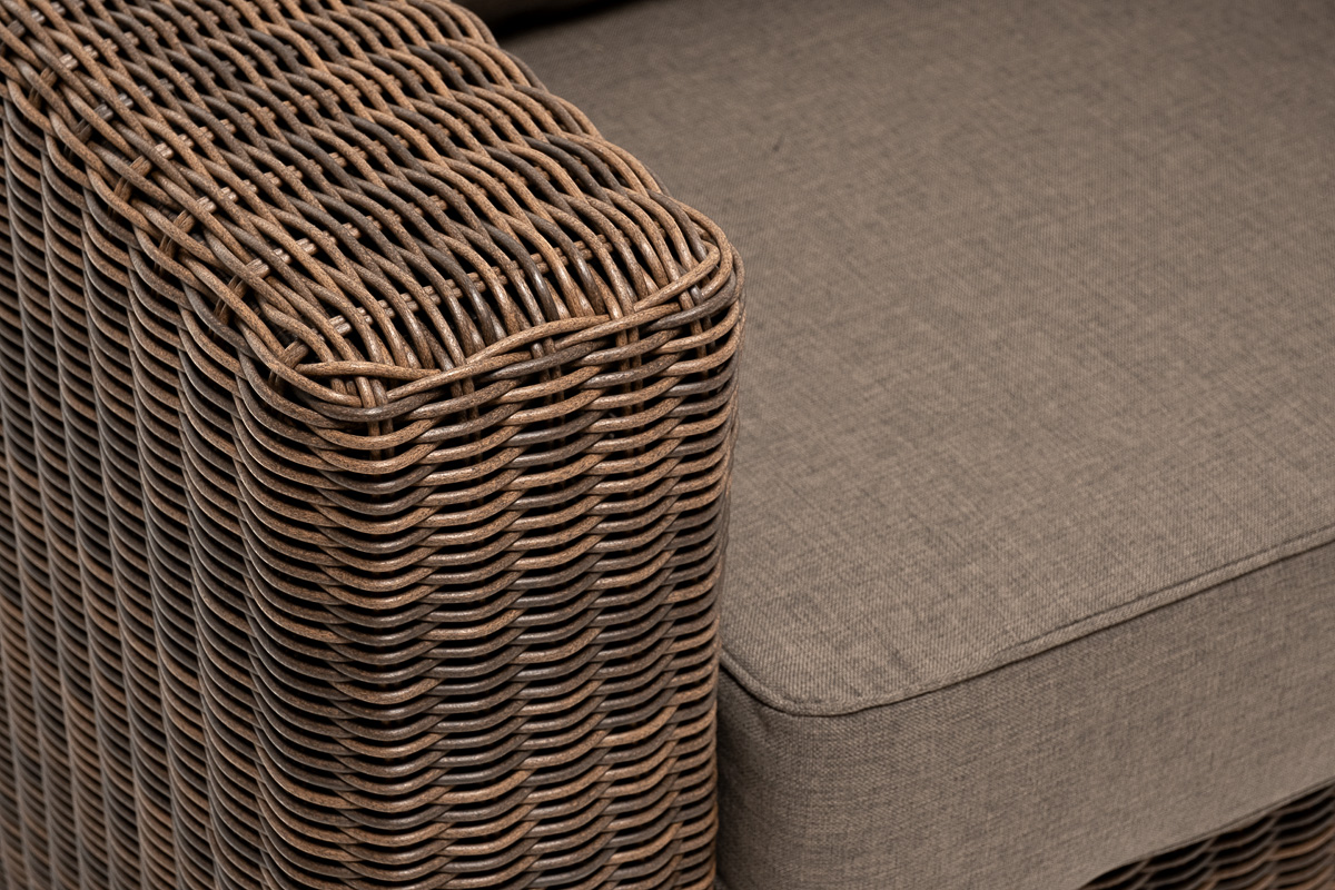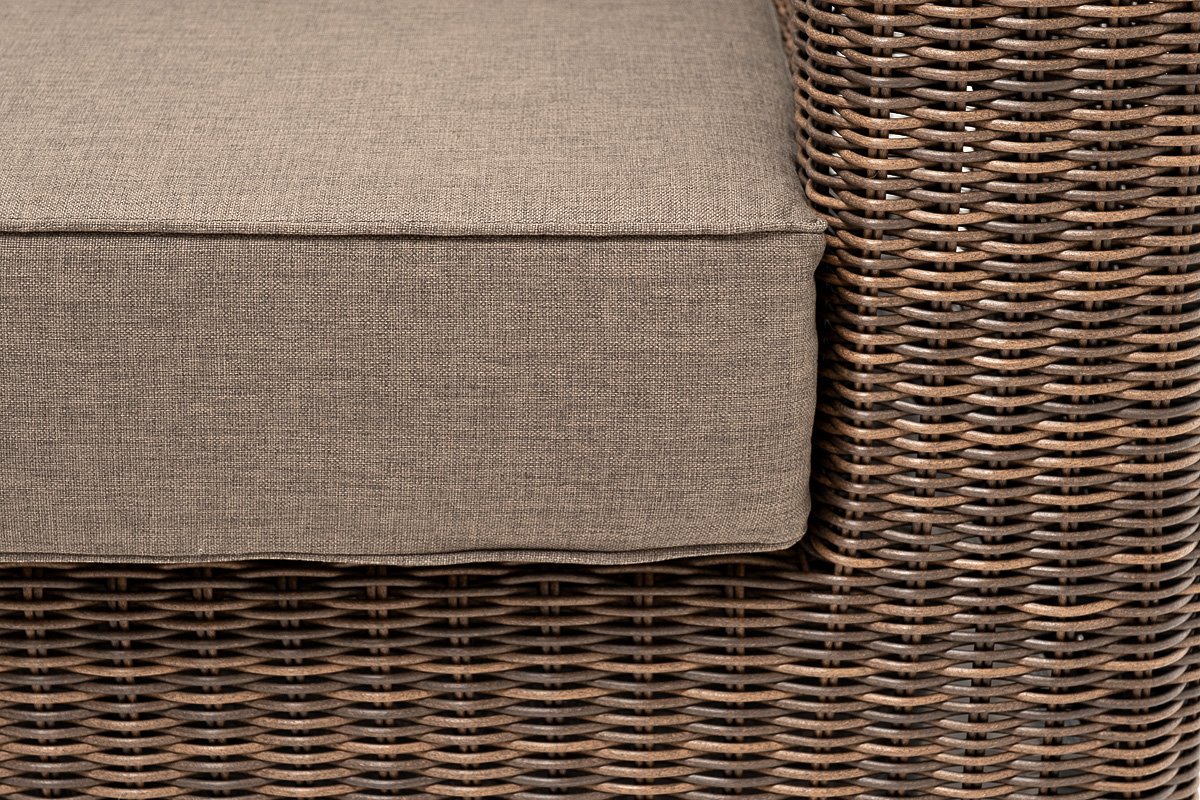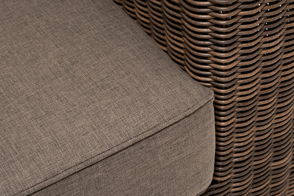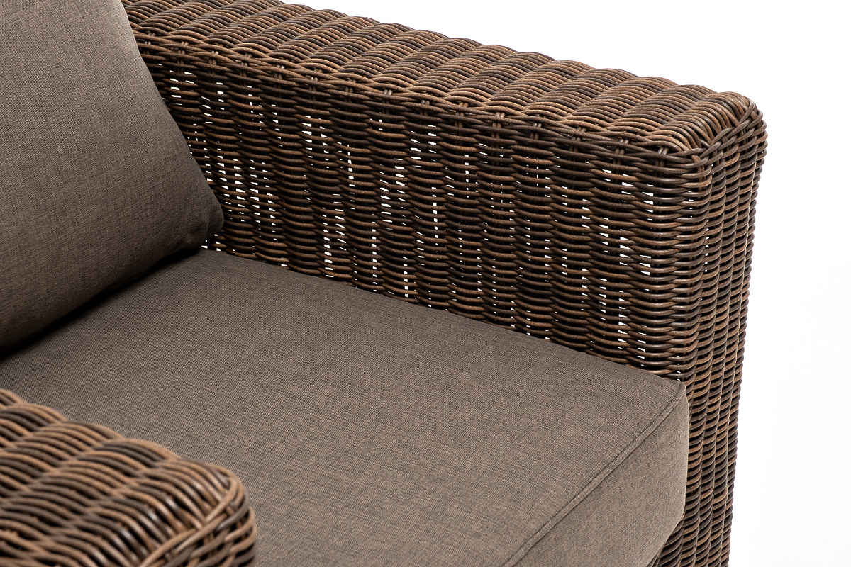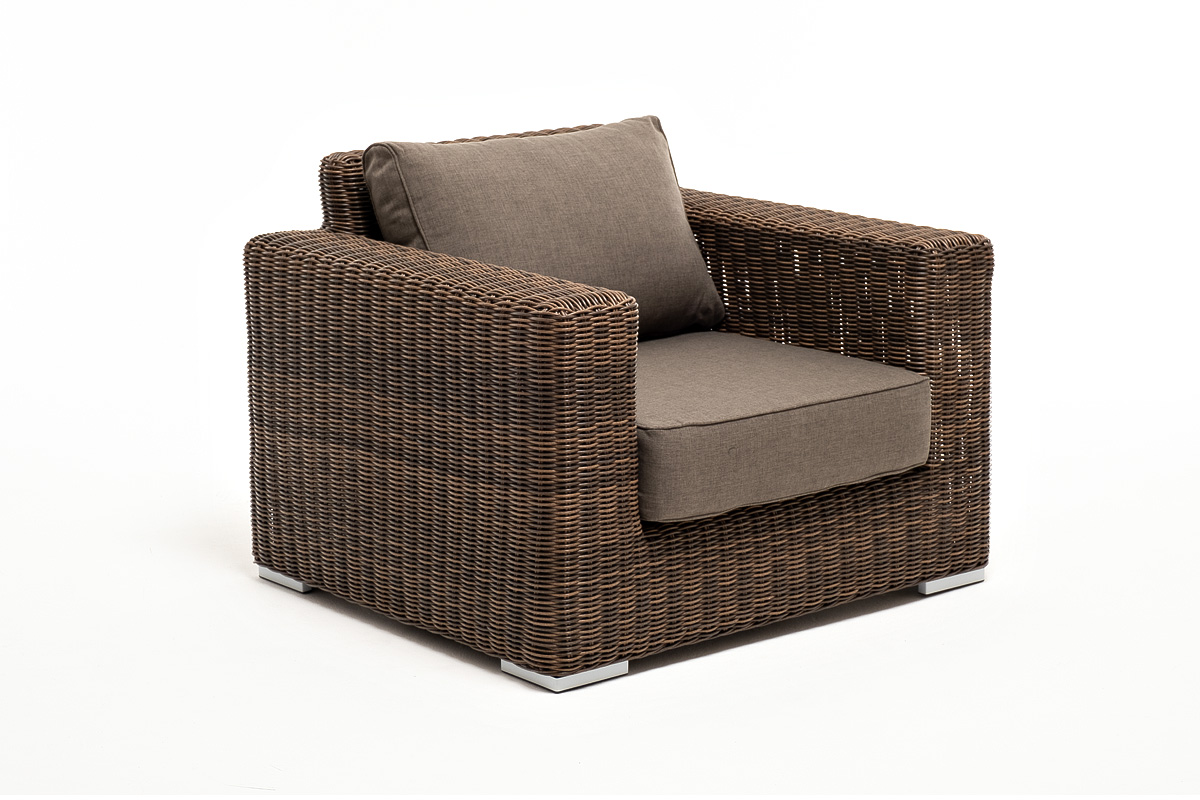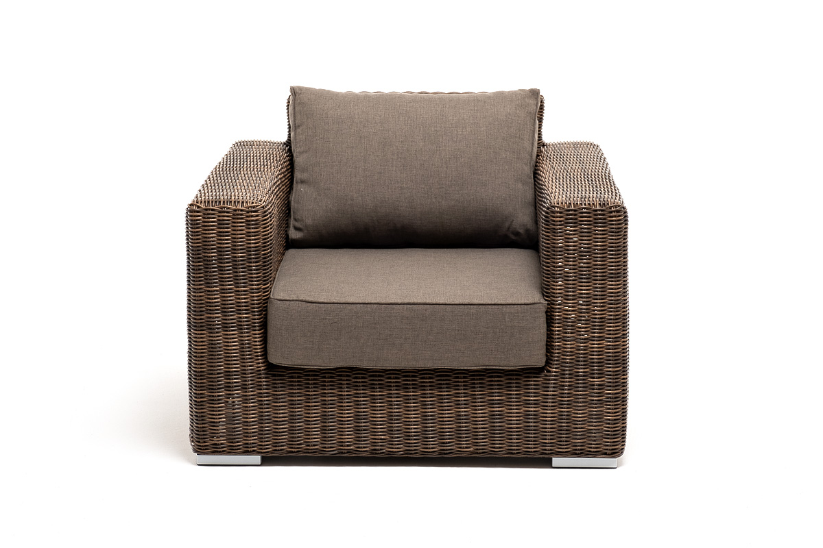 Кресло из искусственного ротанга "Боналли" станет прекрасным дополнением к месту отдыха. Кресло оснащено каркасом из прочного алюминия, ручное круглое плетение является основным декоративным элементом мебели. Оно выполнено из искусственного ротанга в коричневом цвете. В комплектацию входят мягкие подушки для комфортного расположения. Чехлы съемные серо-коричневого цвета из высококлассного полиэстера с плотностью 230гр/м2. Габариты модели составляют 1000×900×755 мм, толщина подушки: 150 мм, вес: 23 кг.