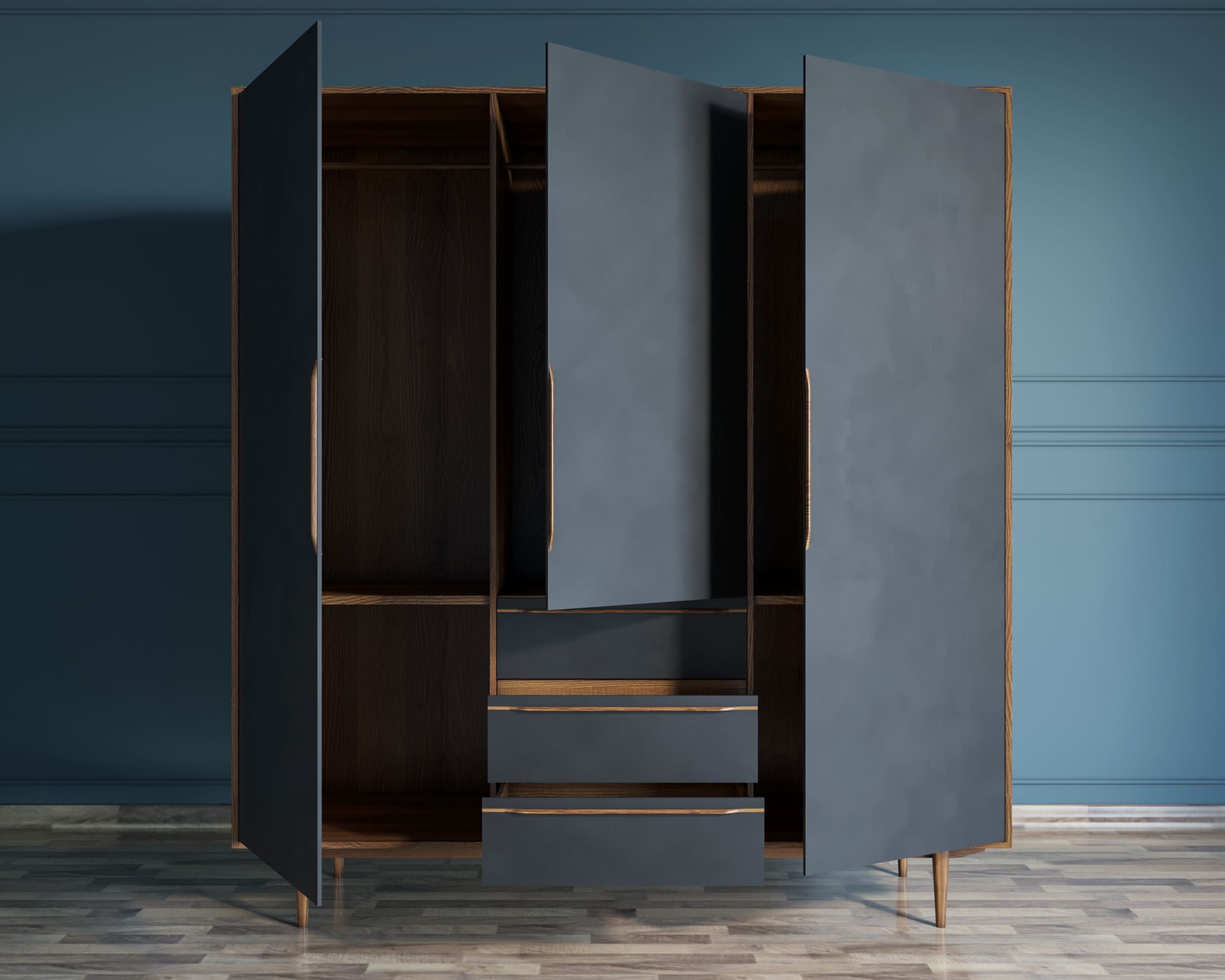 Трехстворчатый шкаф "Bruni" определенно станет главным функциональным предметом Вашей спальной зоны, неся в себе лаконичность, стиль и практичность и будет прекрасным дополнением в спальне в скандинавском стиле.