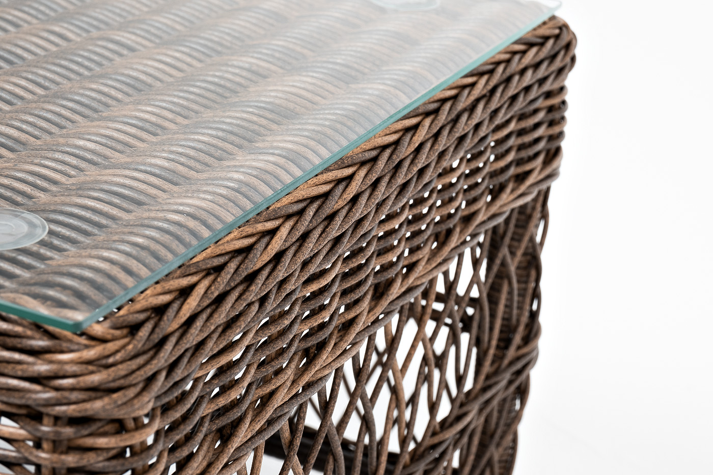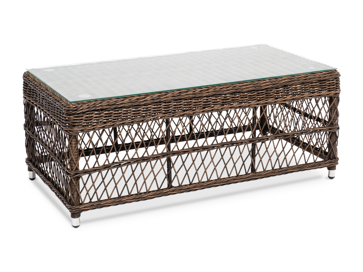 Журнальный столик "Грандинелли" гармонично вписывается в зону отдыха, обустроенную на свежем воздухе. Размер модели – 1200×570×450 мм. Каркас изготолен из алюминия, который гарантирует устойчивость при размещении на любой поверхности. В качестве декоративного элемента выступает ручная оплетка на основе круглого искусственного ротанга, представленного в коричневом оттенке. Столик дополняет столешница из закаленного стекла высокого качества. Она крепится с помощью вакуумных присосок. Это позволяет перевозить столик в собранном виде без опасений разбить столешницу. Толщина стекла – 5 мм.